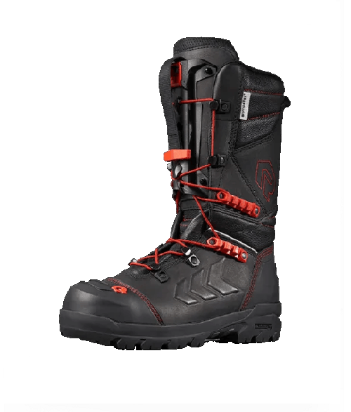 Wystarczy jedno pociągnięcie zamka błyskawicznego Rosenbauer, aby założyć buty  BOROS B4. W ten sam sposób jednym kliknięciem centralna klamra uwalnia napięcie z systemu sznurowania, umożliwiając błyskawiczne zdjęcie buta. Indywidualne drobne korekty można również wykonać za pomocą dwóch specjalnych haków regulujących.
