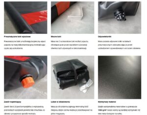 • Zawór napełniający – służy do pompowania ścianek pneumatycznych, umożliwiając ich szybkie i bezpieczne napełnienie powietrzem.