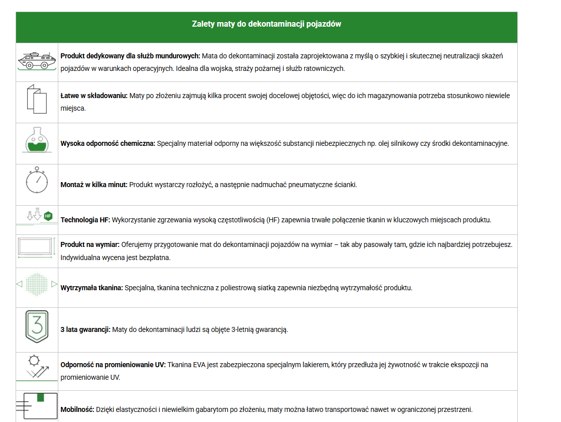 Brak odpowiedniego zabezpieczenia może skutkować przenikaniem szkodliwych substancji do gruntu oraz stanowić zagrożenie dla zdrowia ludzi i zwierząt. Mata dekontaminacyjna pozwala na bezpieczne przechwycenie zanieczyszczeń spłukiwanych z pojazdu i ich kontrolowane usunięcie.